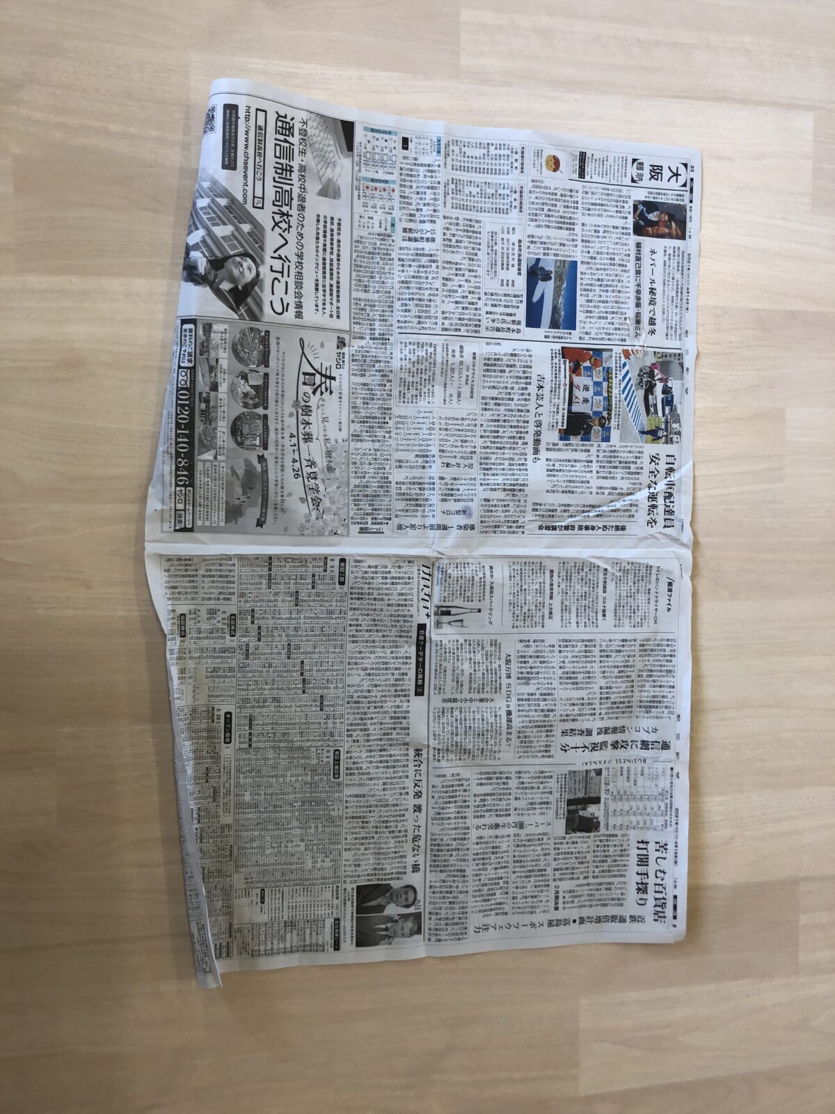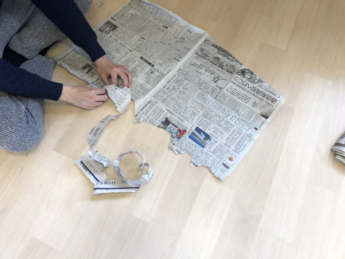 1.新聞紙×バランスで使った新聞紙を広げます。